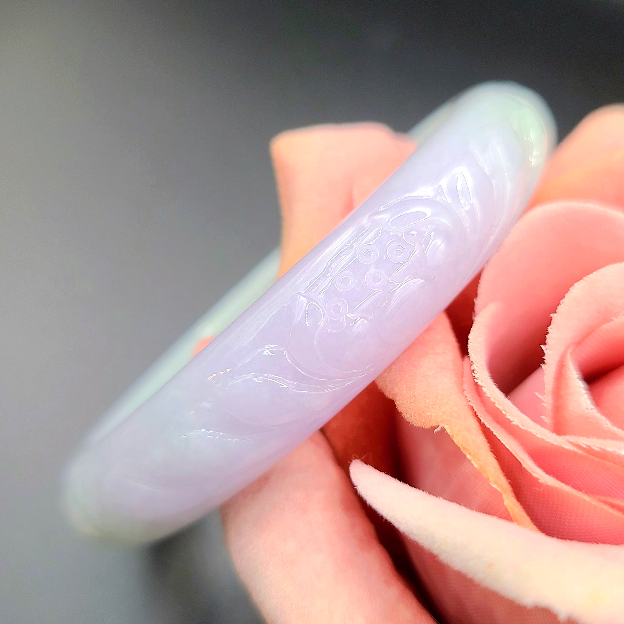 紫羅蘭糯冰種龍鳳雕翡翠手鐲