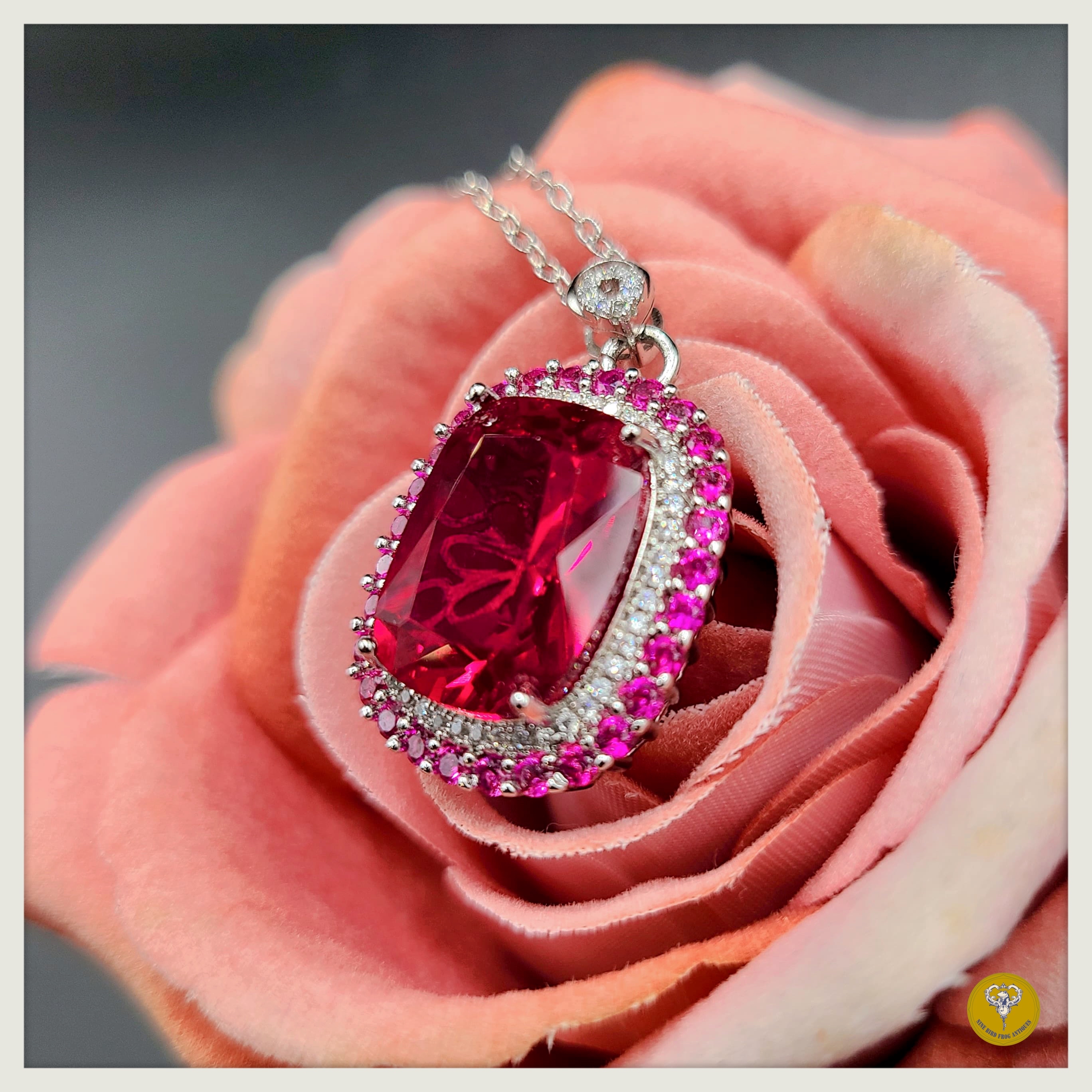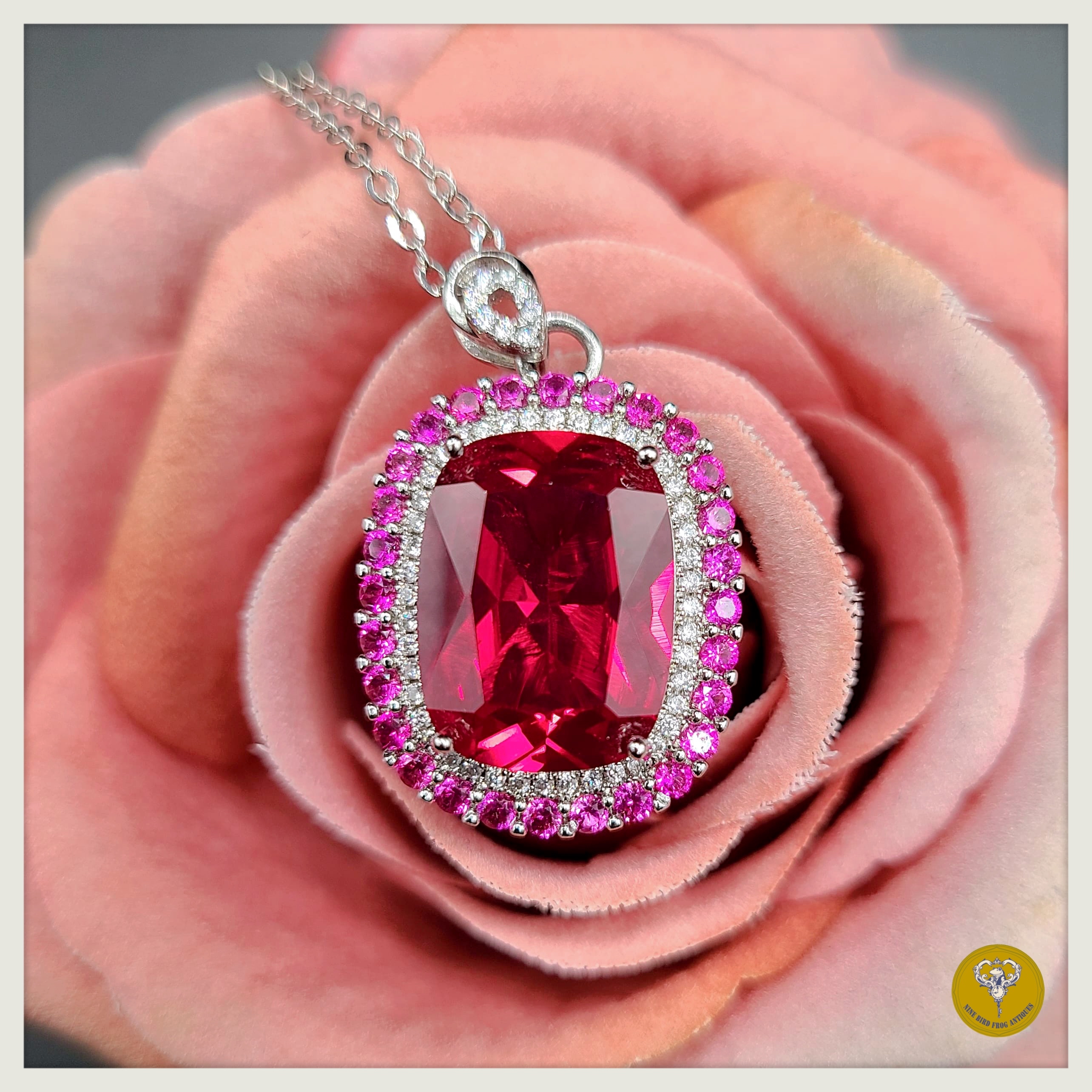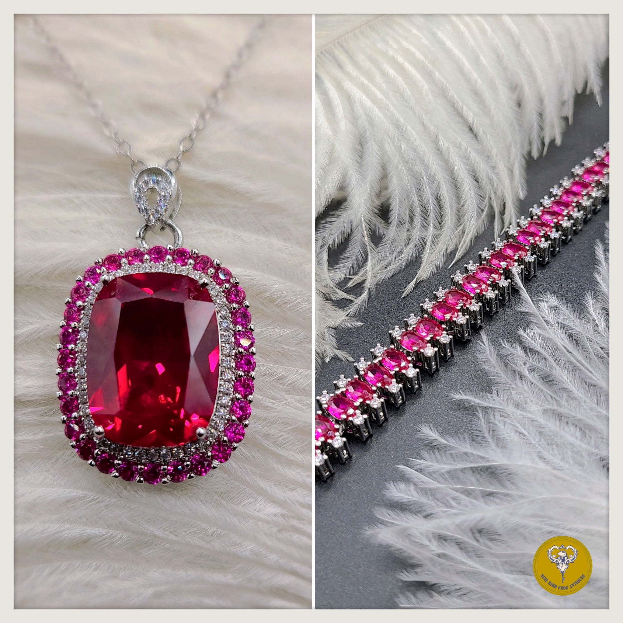 培育紅寶石鑽石銀包金吊嘴頸鍊及手鍊