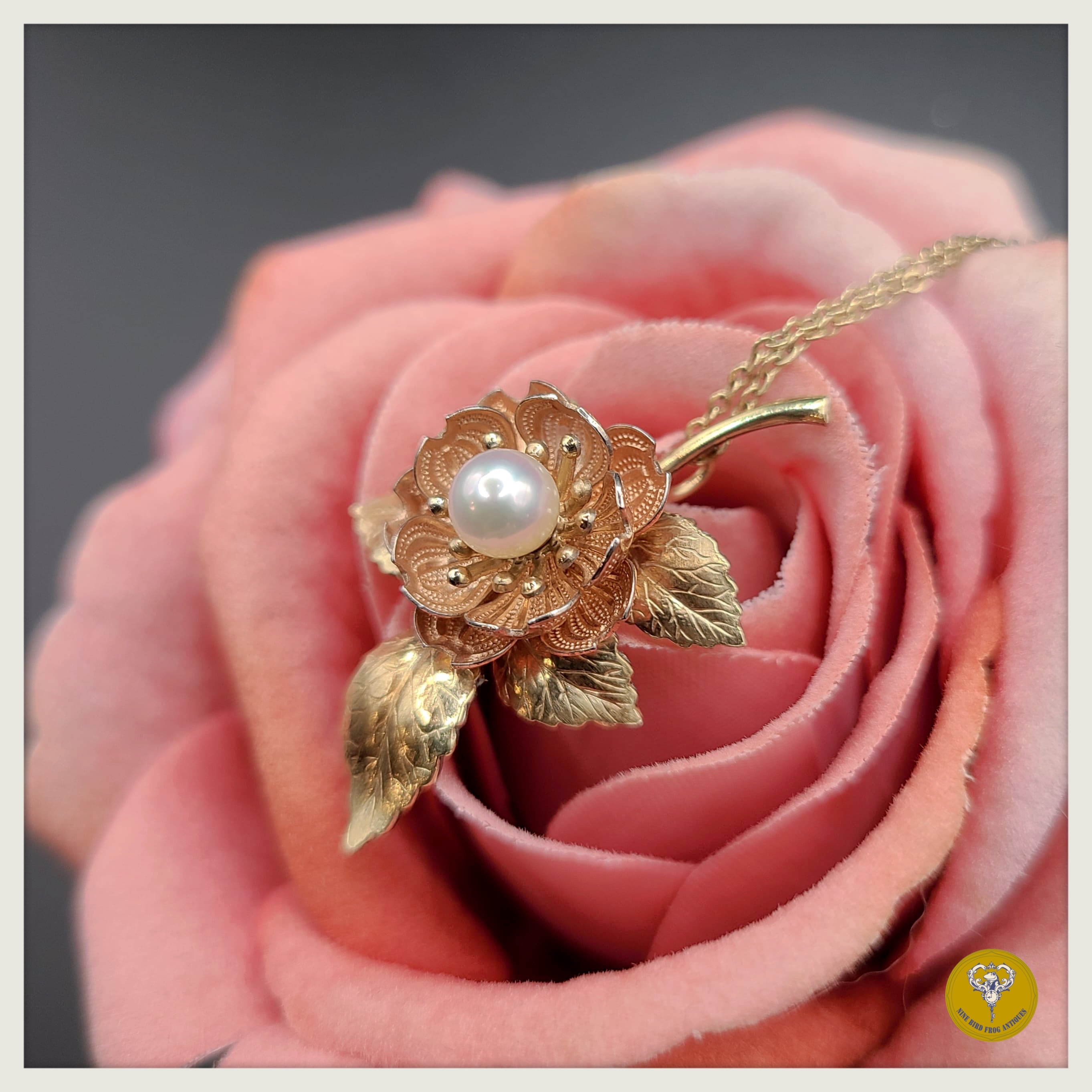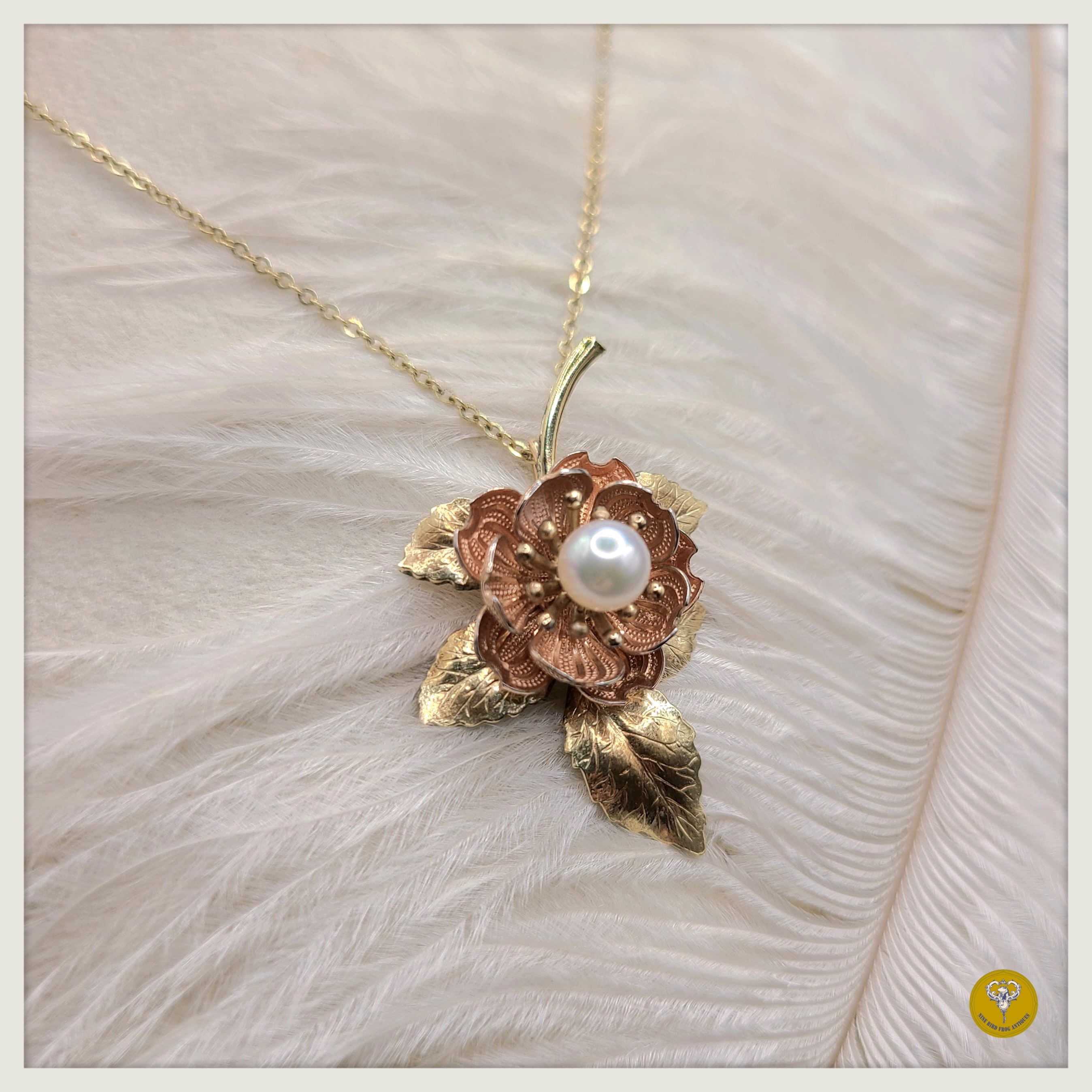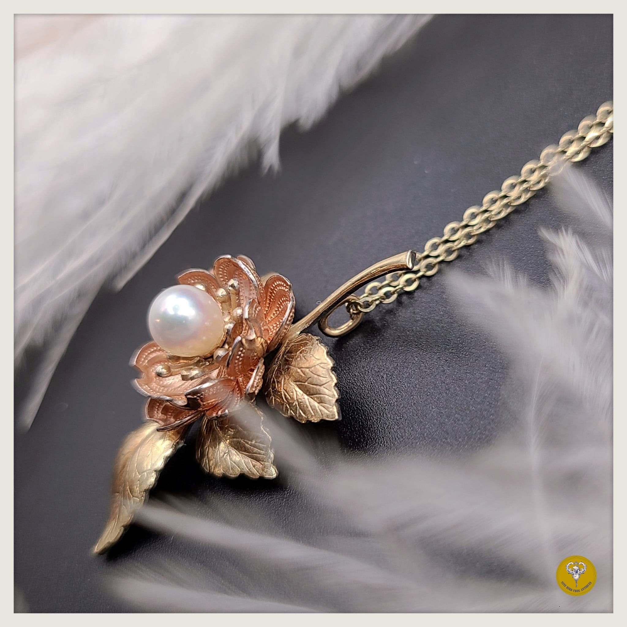 60年代Krementz 珍珠14k包金櫻花頸鍊