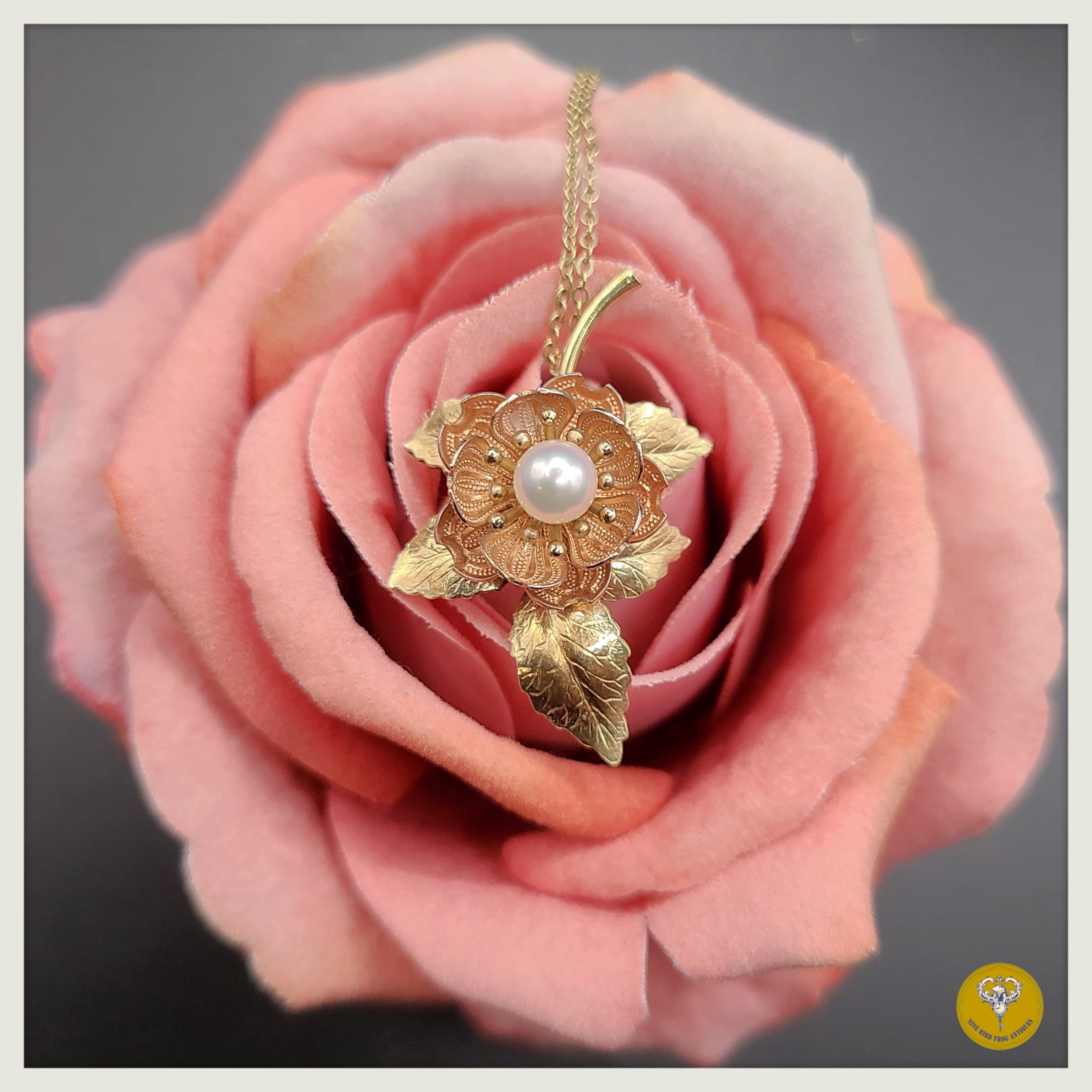 Krementz 櫻花系列由2層5瓣花辦疊置而成,十分立體,外圍由小至中間大的花葉構圖令主體大櫻花更有焦點,花瓣更刻上圓點花作花瓣紋理,這吊嘴最特別的地方是花心部分鑲上一顆天然白圓珍珠,更泛起粉紅珠光,精緻得每個細節都見盡心機的精品。 Krementz 1886年創立於紐約,以優良品質在20世紀時尚珠寶界(Costume Jewelry)占重要一席之地的美國珠寶品牌 , 品牌獨特的14金包金(14k rolled gold overlay)是當時法定鍍金厚度的30 倍,做工見良心哦!難怪歷久常新。
