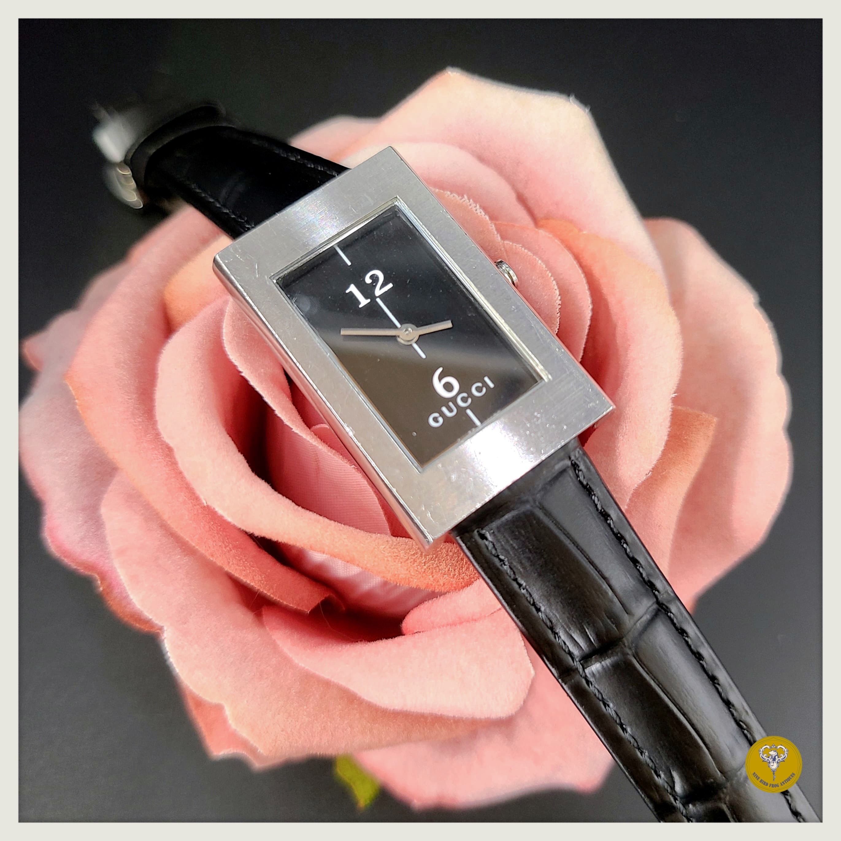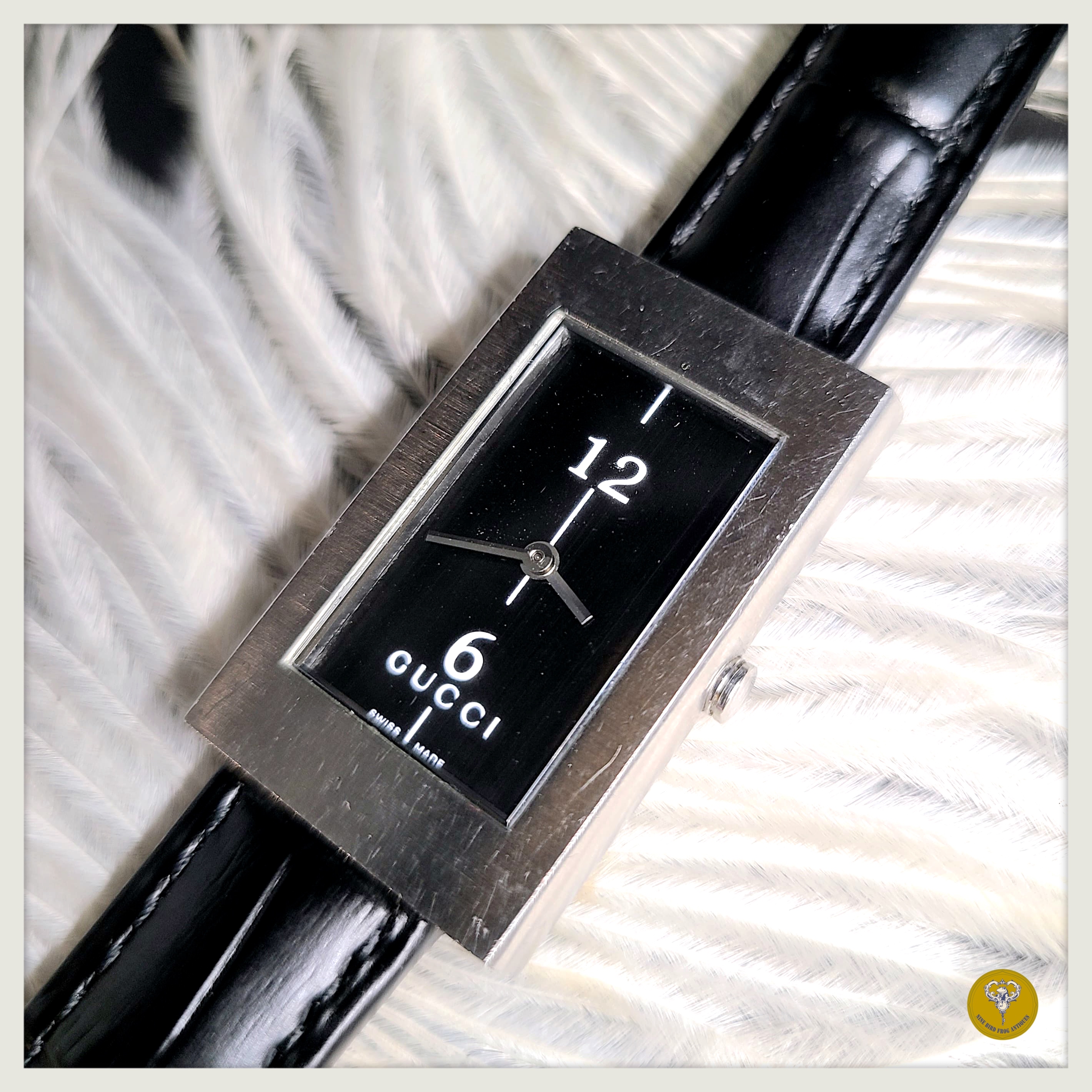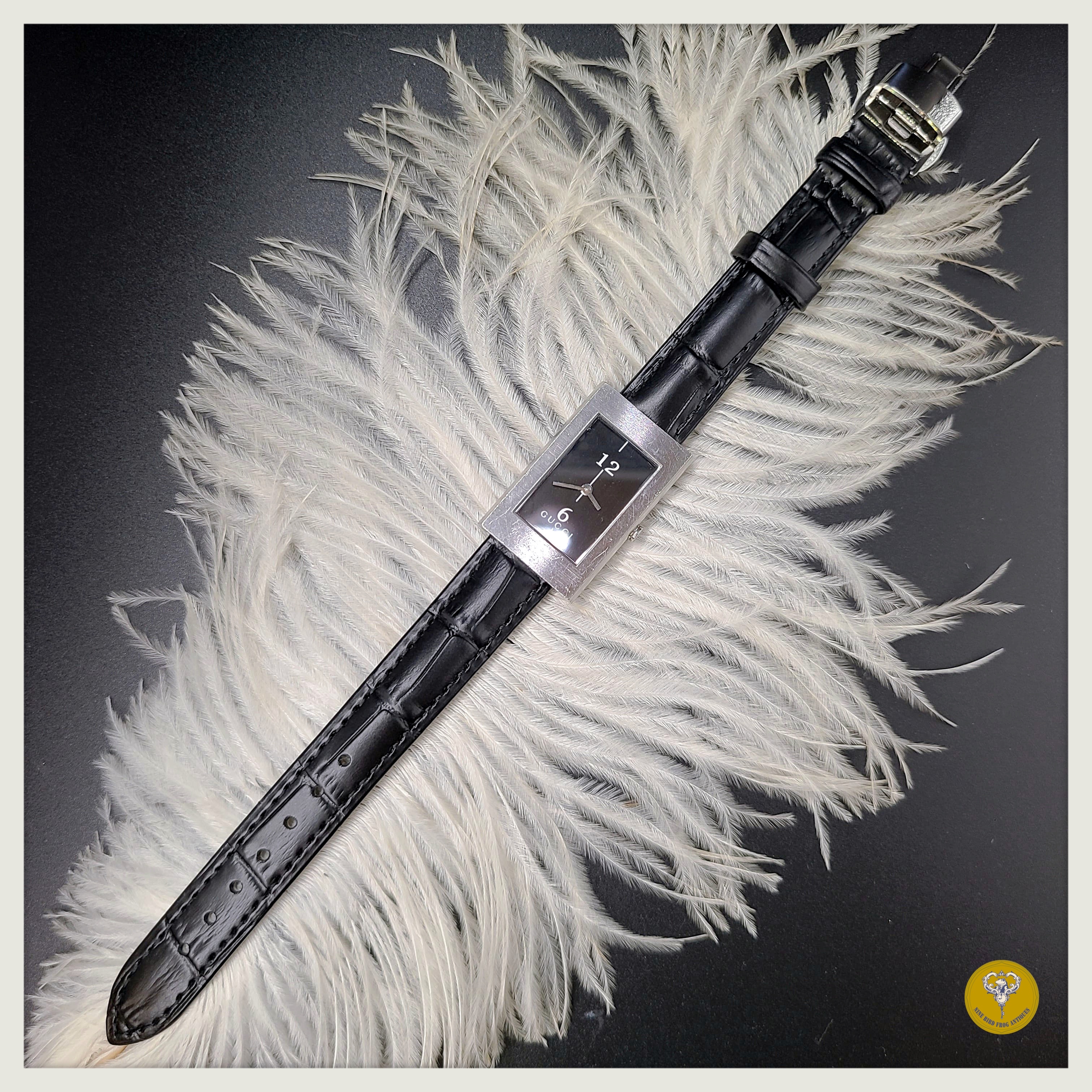 GUCCI vintage中性的錶實在罕見,畫框般的長方形鋼錶框,錶面只有數字12、6,簡約又充滿藝術感,真正的男女皆宜。已換新電行走正常,配上新配的皮帶,無論任何年代衣著都能百搭。 錶面:23x36mm