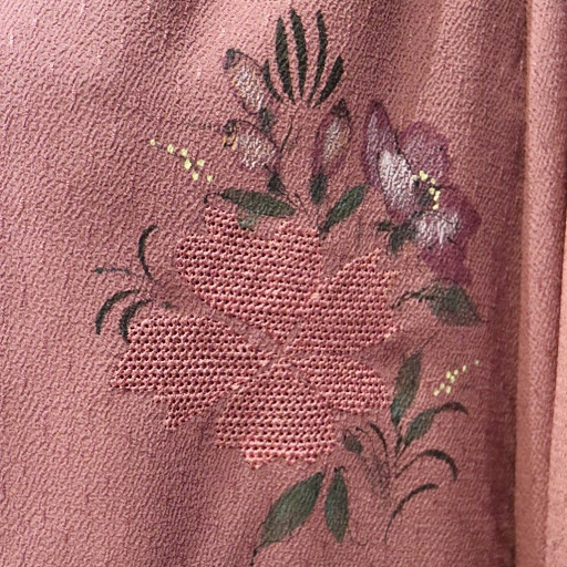 VINTAGE 日本粉紅花邊圓領綁蝴蝶結襯衫 立體織花圖案印上油畫圖案,可作外套款用。 胸圍110cm 腰圍118cm 衫長58cm