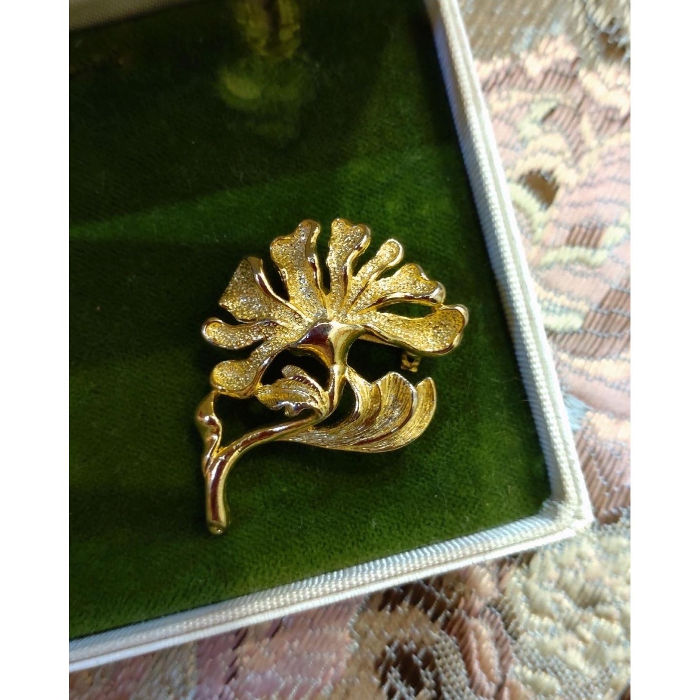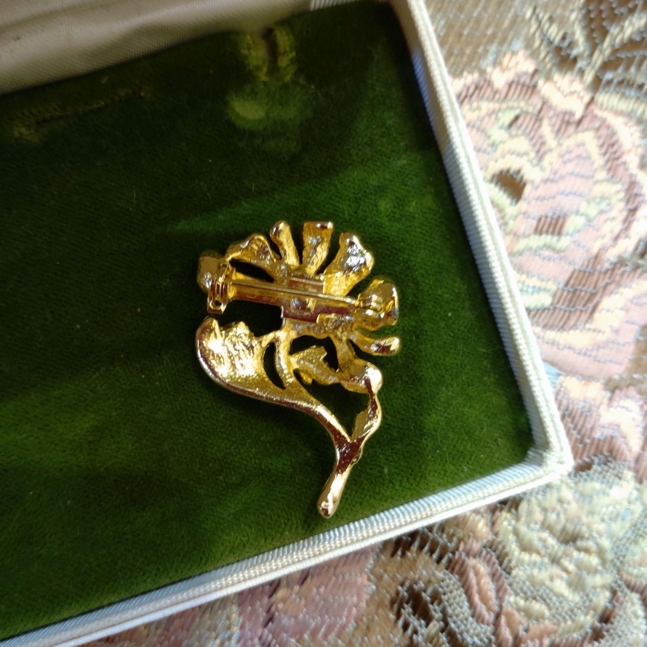 Vintage Art Nouveau金色花卉胸針