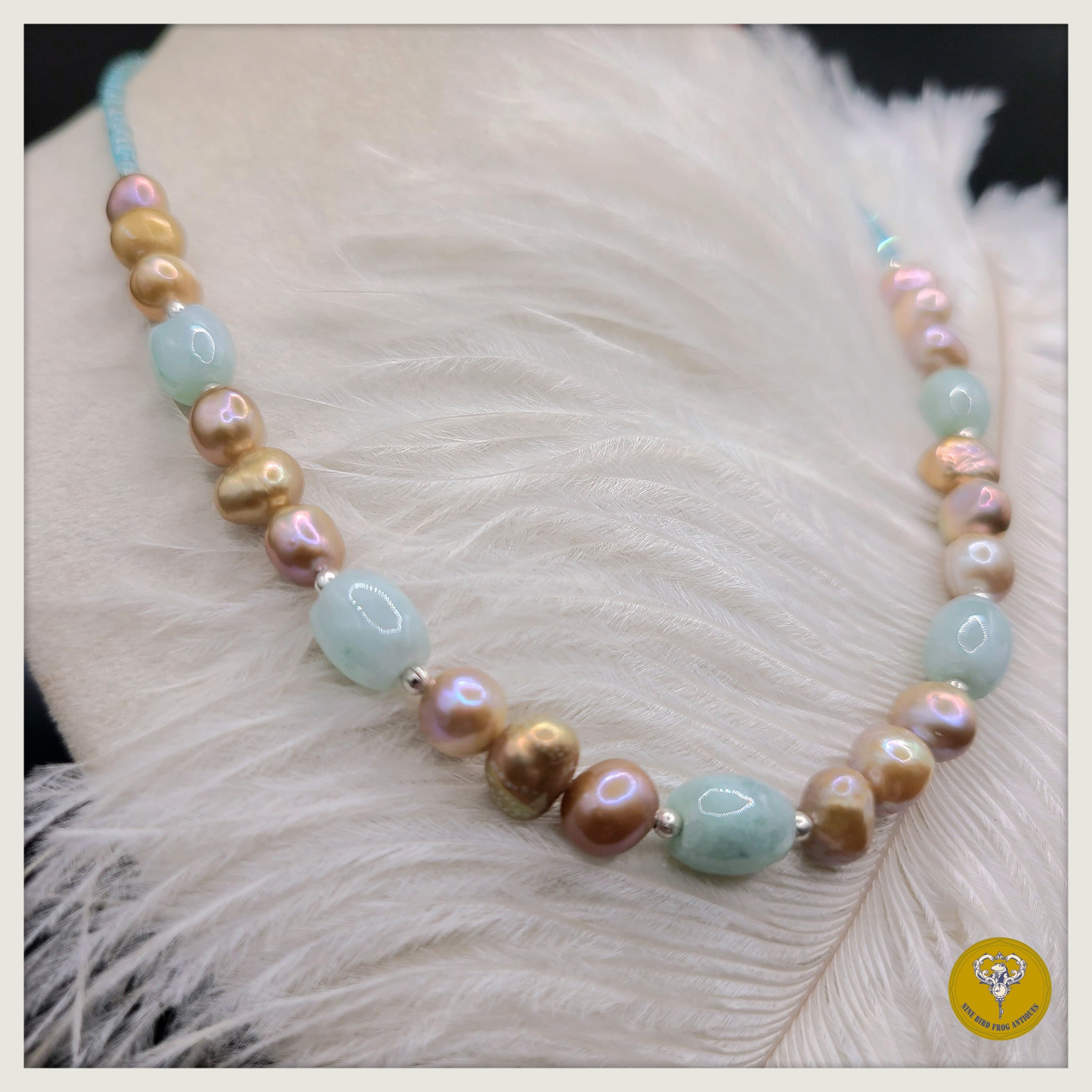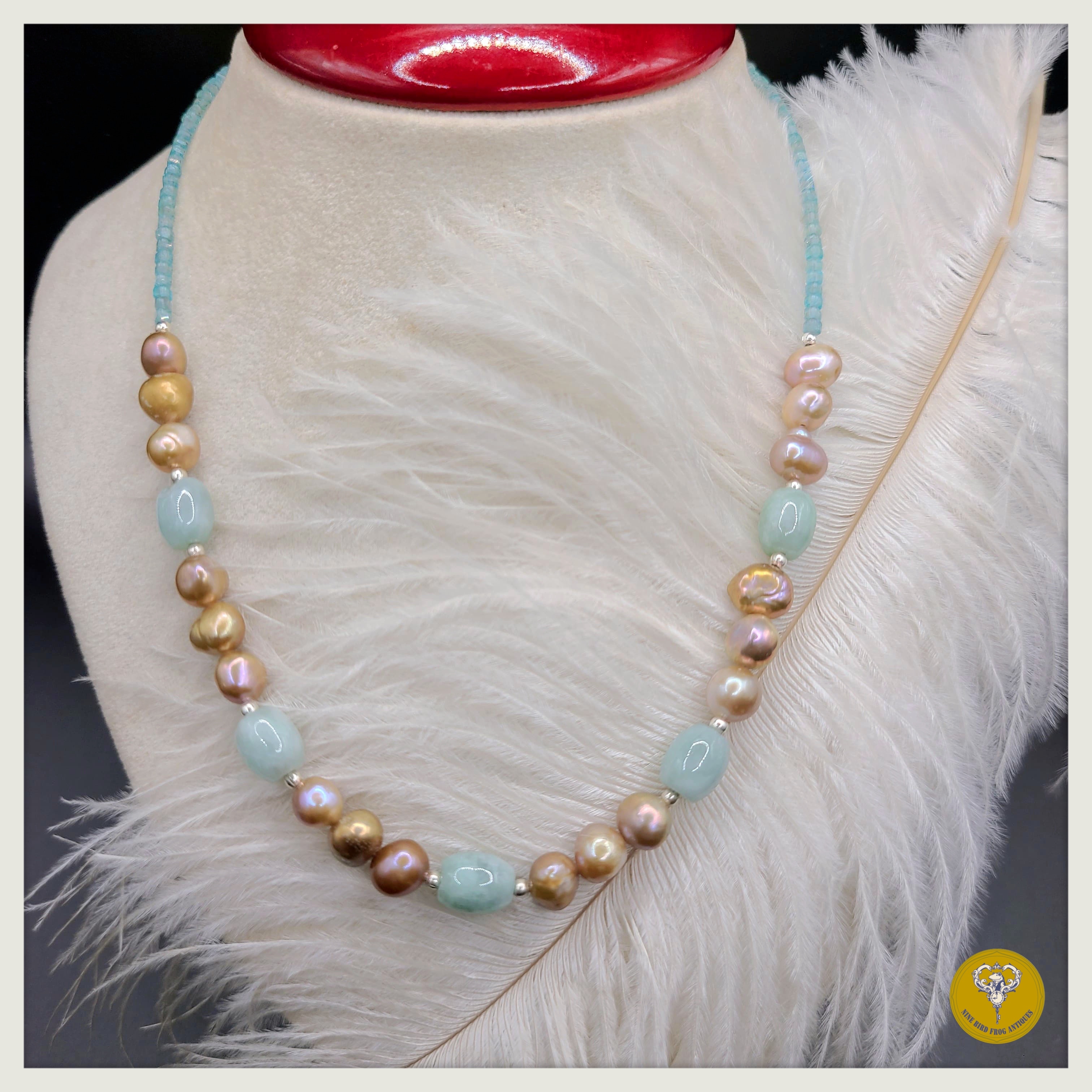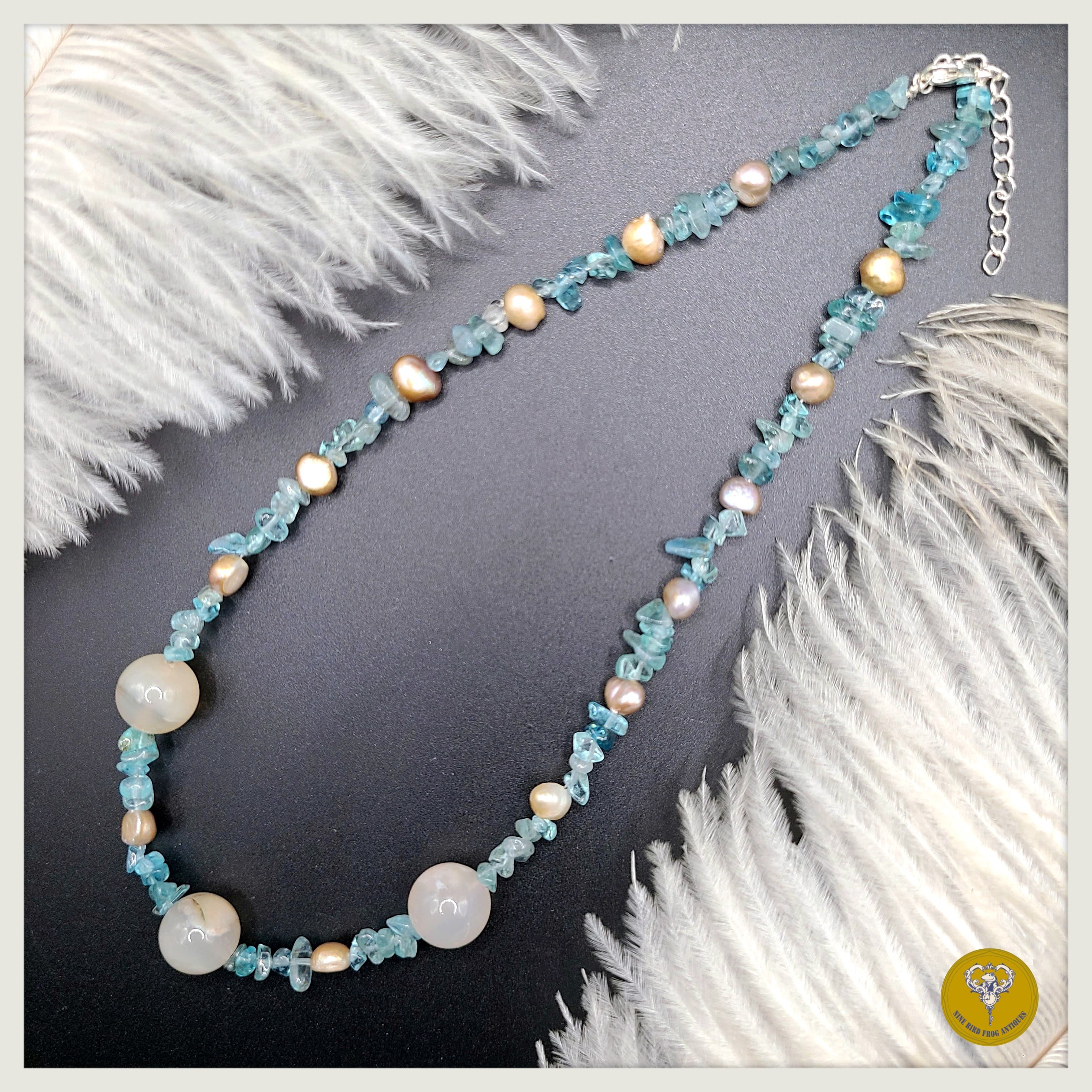 D. 天然珍珠櫻花瑪瑙藍磷輝石頸鍊