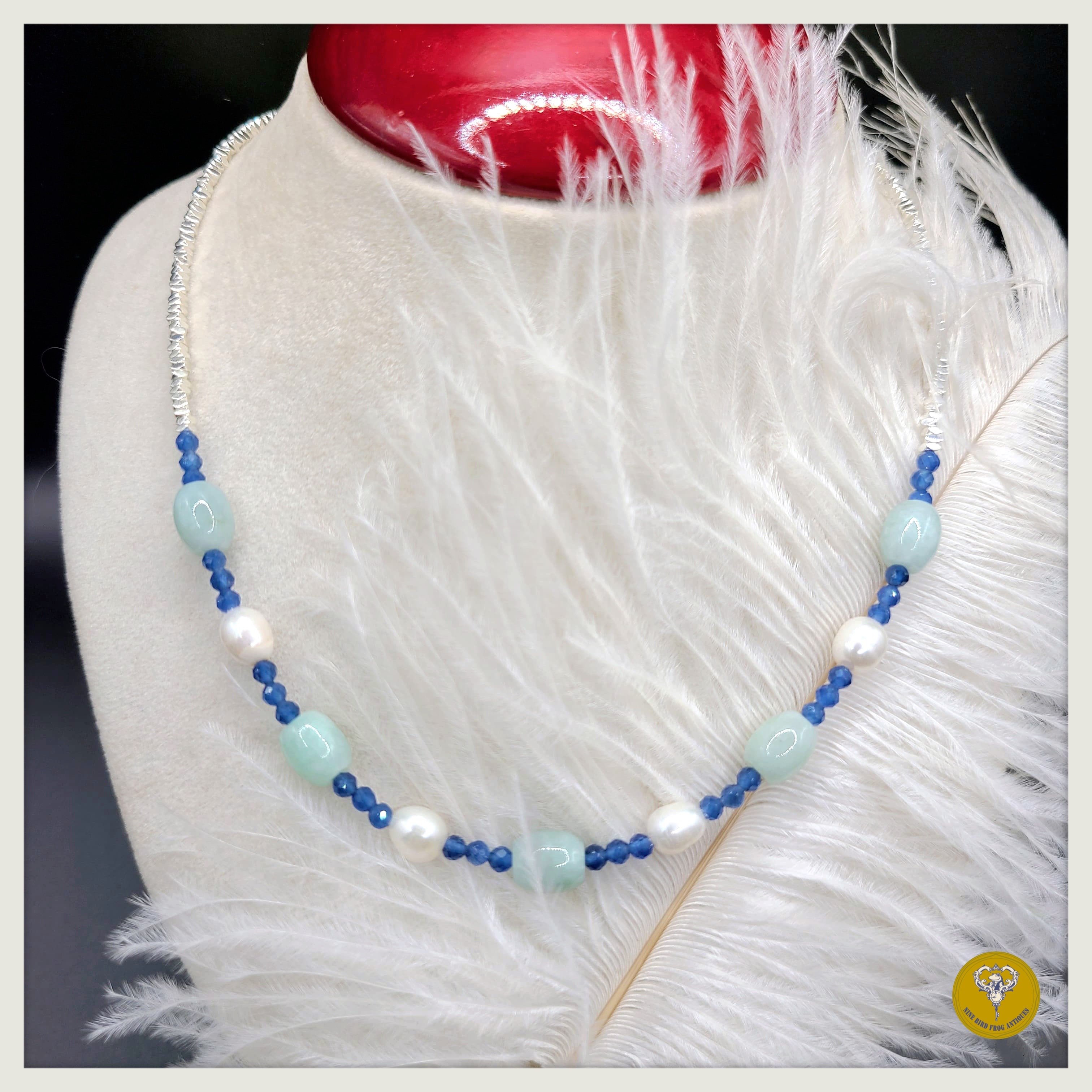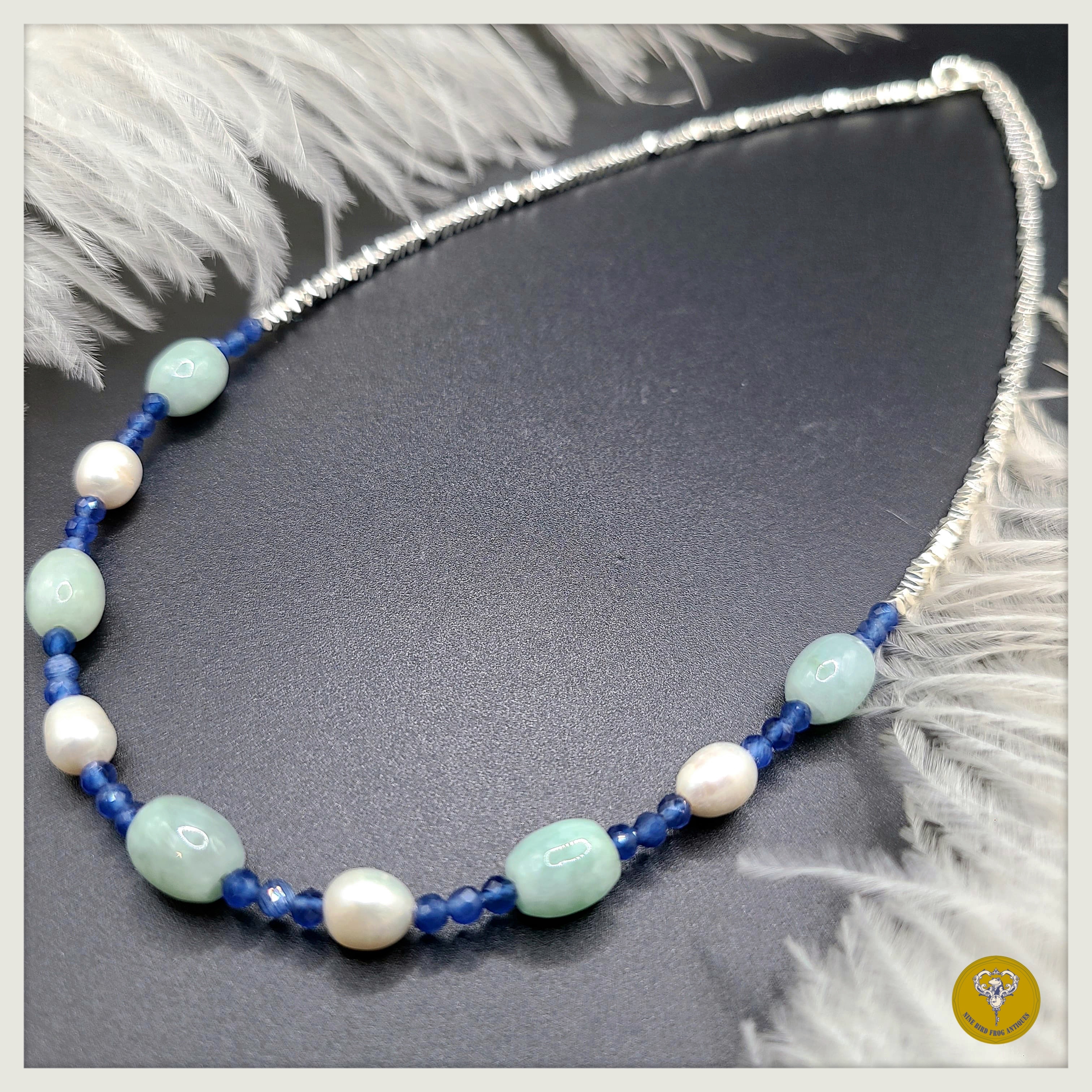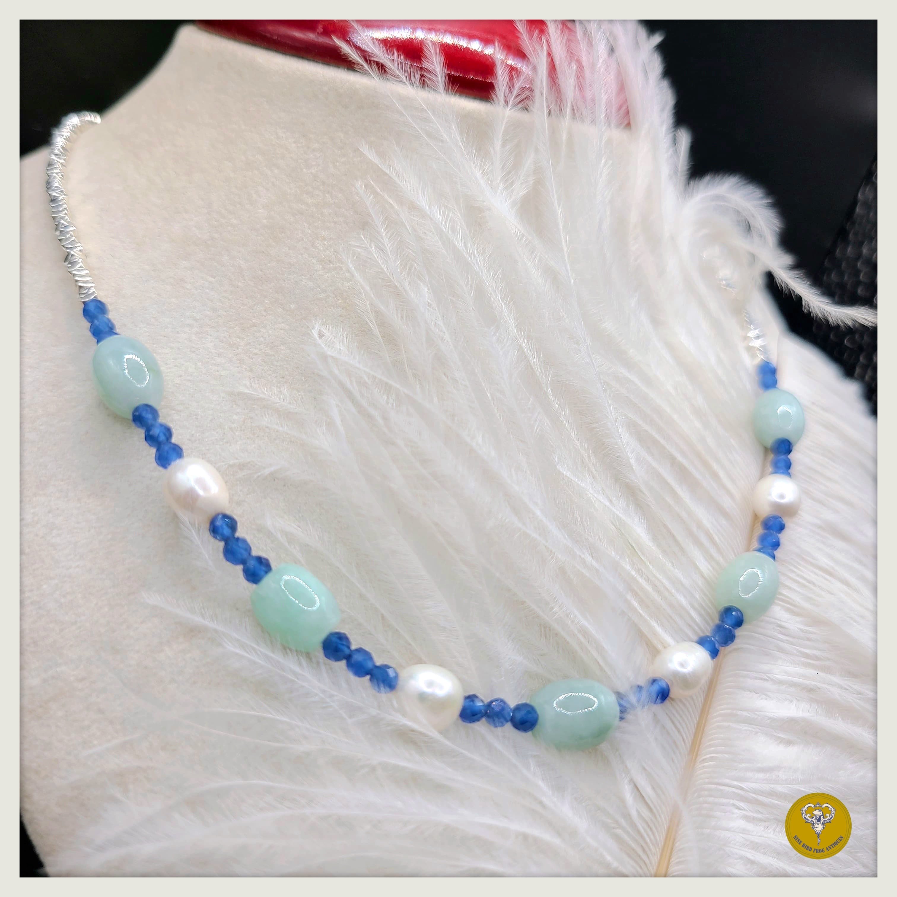 A. 天然珍珠石榴石青金石瑪瑙櫻花瑪瑙紫水晶頸鍊 B. 天然珍珠翡翠藍晶石頸鍊 C. 天然珍珠翡翠藍磷輝石頸鍊 D. 天然珍珠櫻花瑪瑙藍磷輝石頸鍊