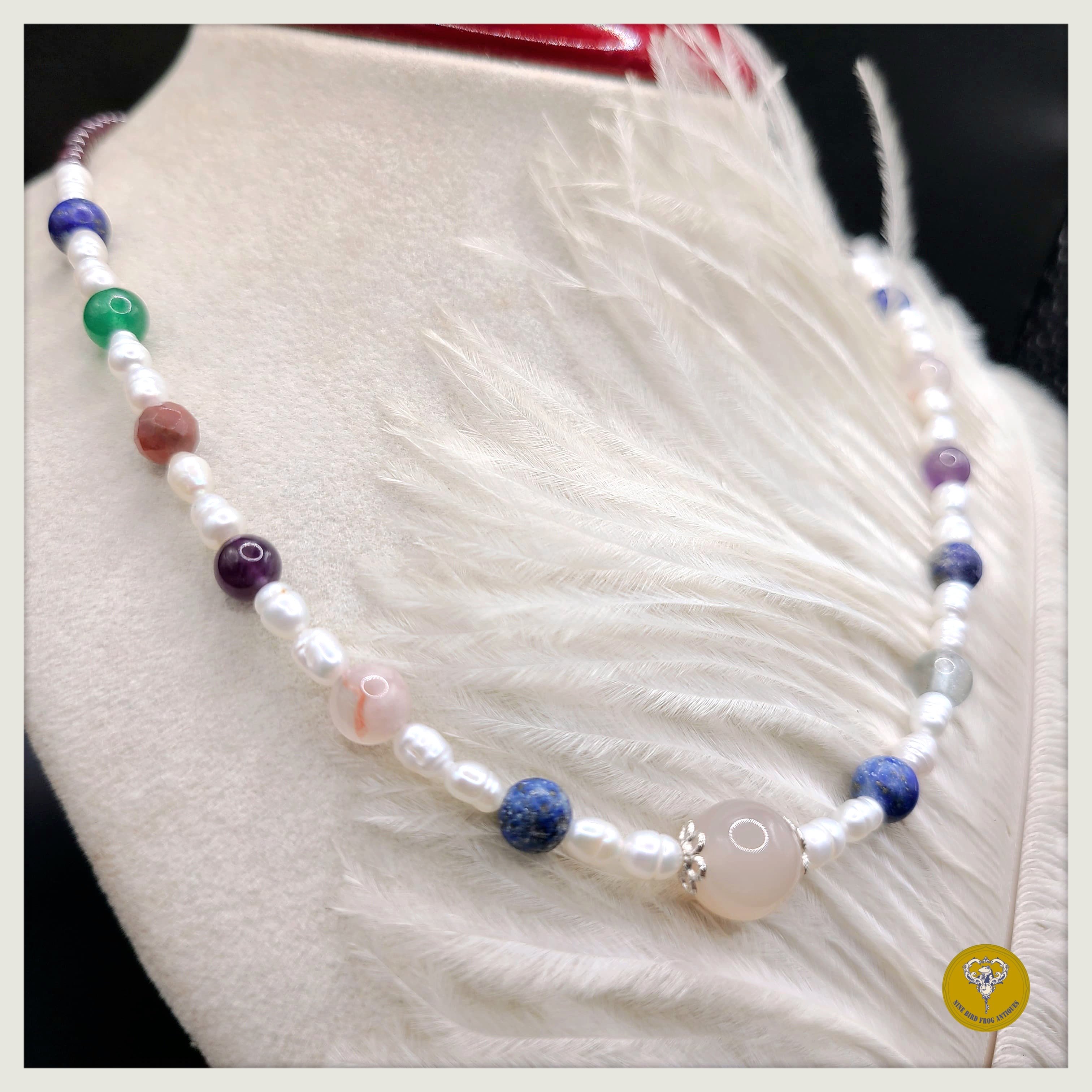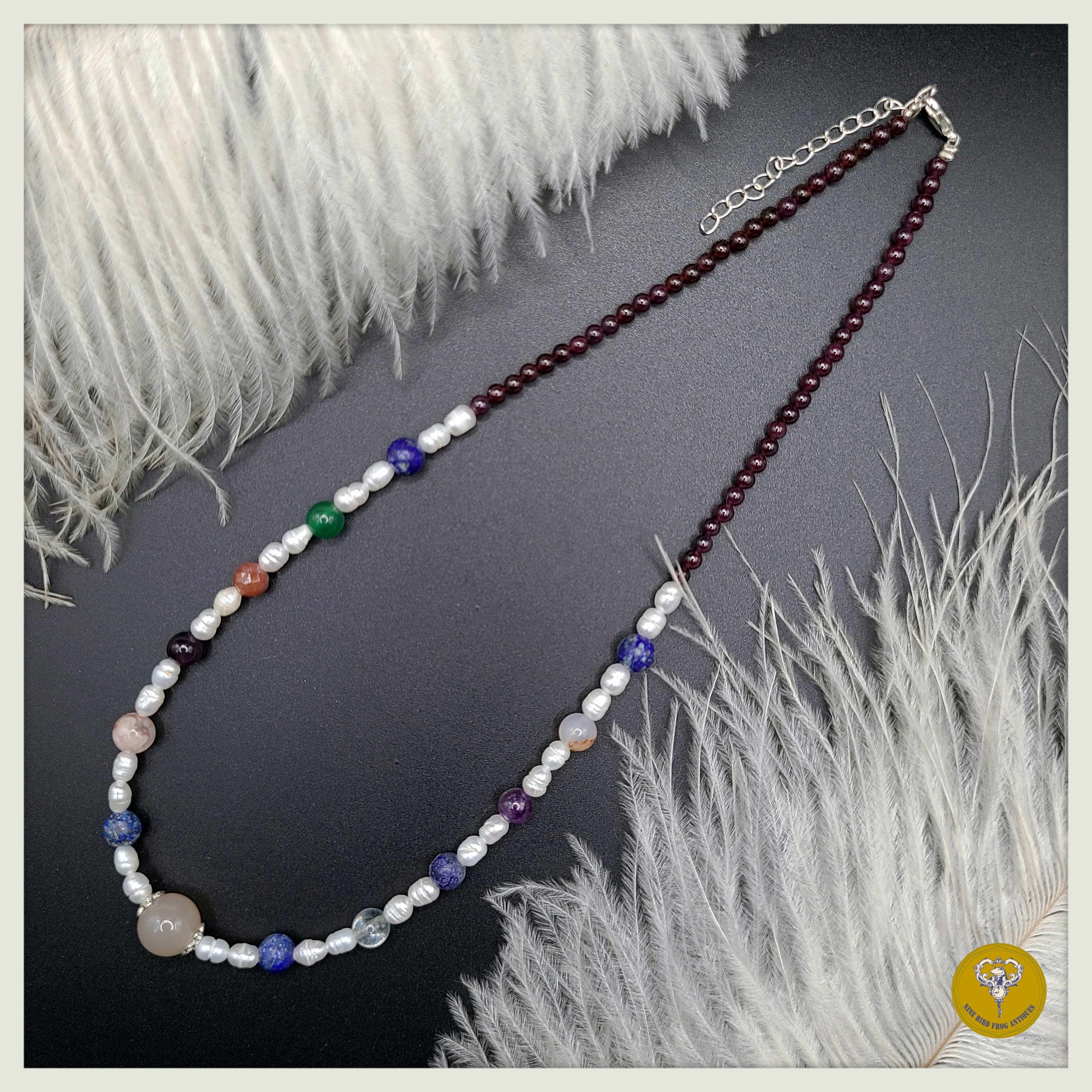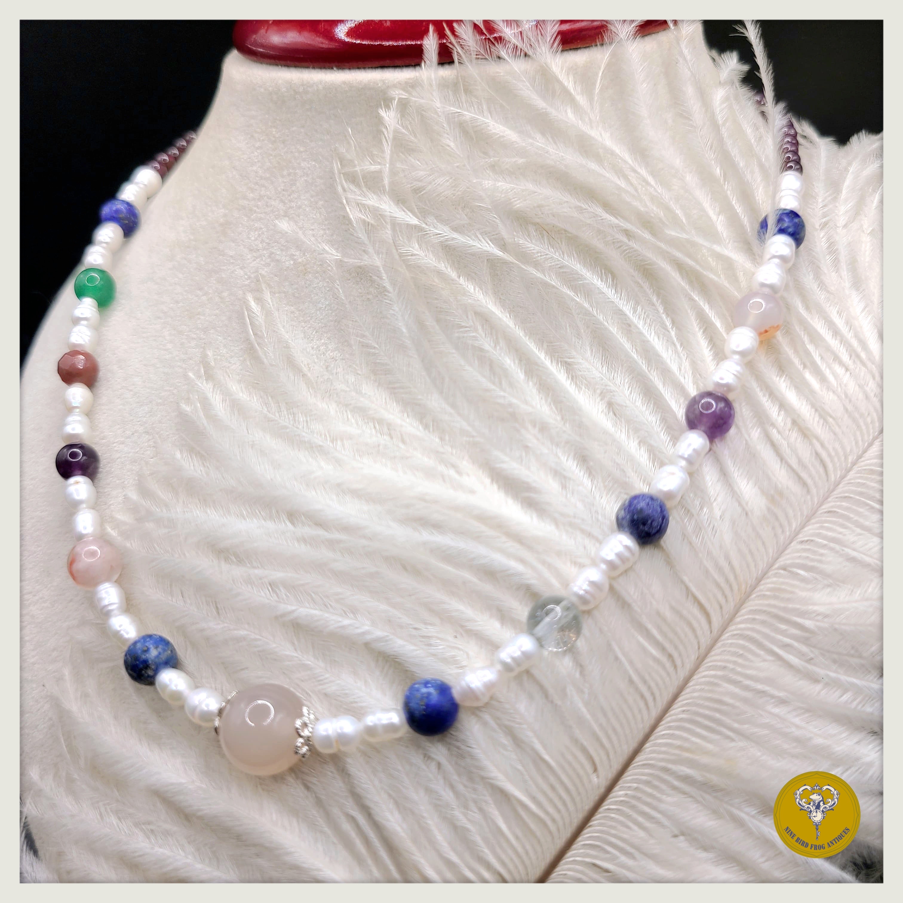 A. 天然珍珠石榴石青金石瑪瑙櫻花瑪瑙紫水晶頸鍊