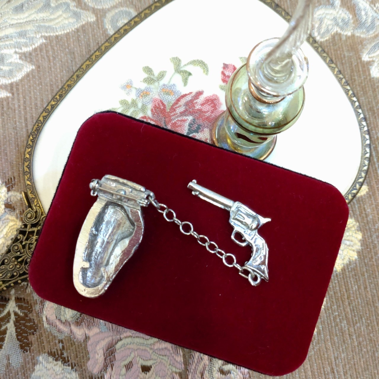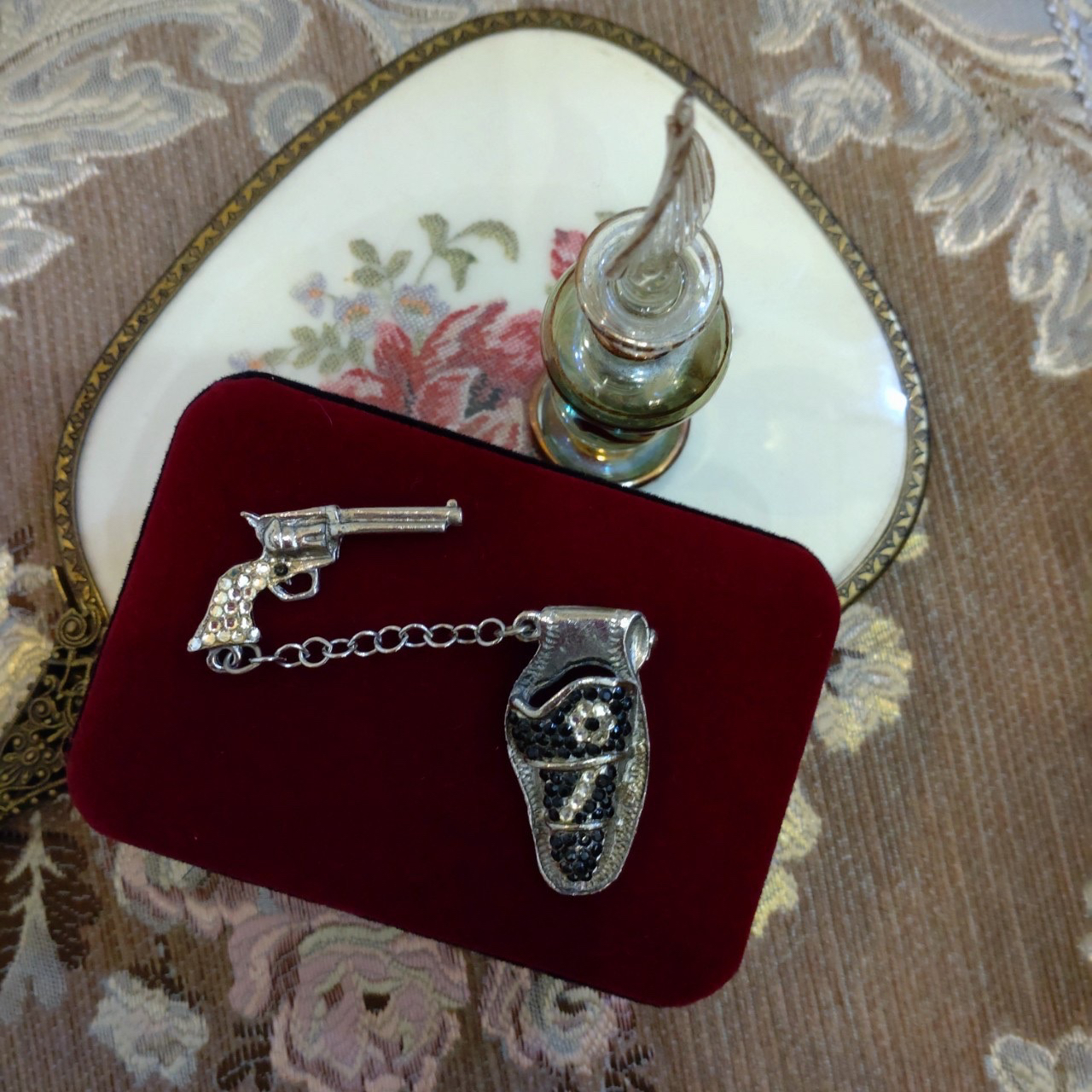 Vintage 萊茵石鎗袋及鎗胸針